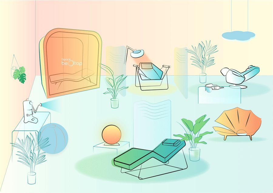Depuis 2005, beOtop crée, agence et anime des espaces de revitalisation en libre-service afin que les collaborateurs retrouvent toute leur énergie en moins de 10 min.